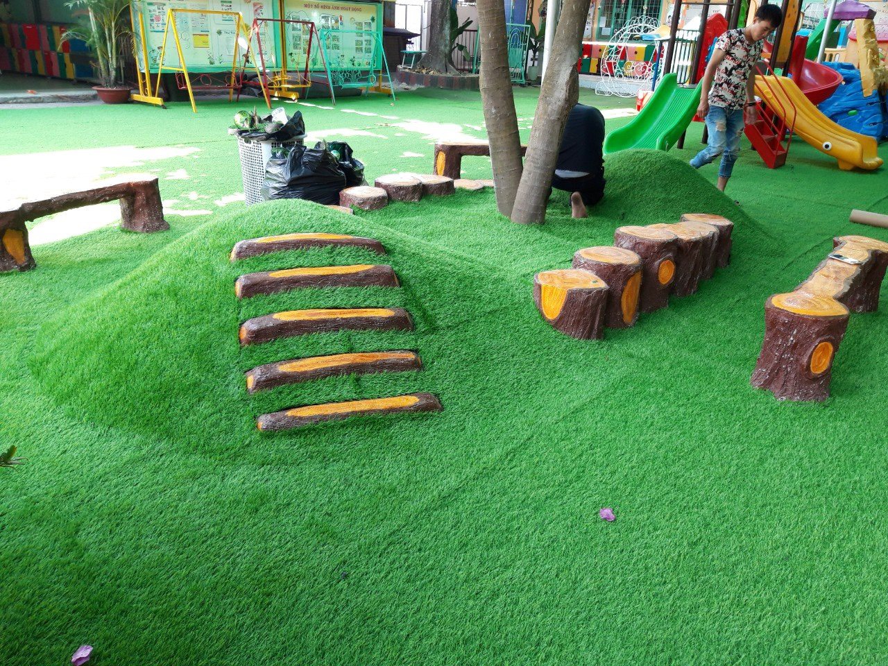 - Trang trí sân chơi, sân bóng mini tại các trường học các cấp. Đặc biệt thảm cỏ nhân tạo trường mầm non đã trở thành 1 hạng mục quan trọng không thể thiếu của hầu hết các ngôi trường hiện đại hiện nay.